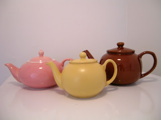 OK, it is 'fess up time! Remember, I am not much of a camera person. Cameras are machines. Machines and I do not get along. (I think I covered that in a previous post somewhere.) Those are not my teapots. Being too lazy to gather mine together for a photo fest, I went to a site for free photos. Their photography is better than mine, anyway. See my sidebar for photo credits.